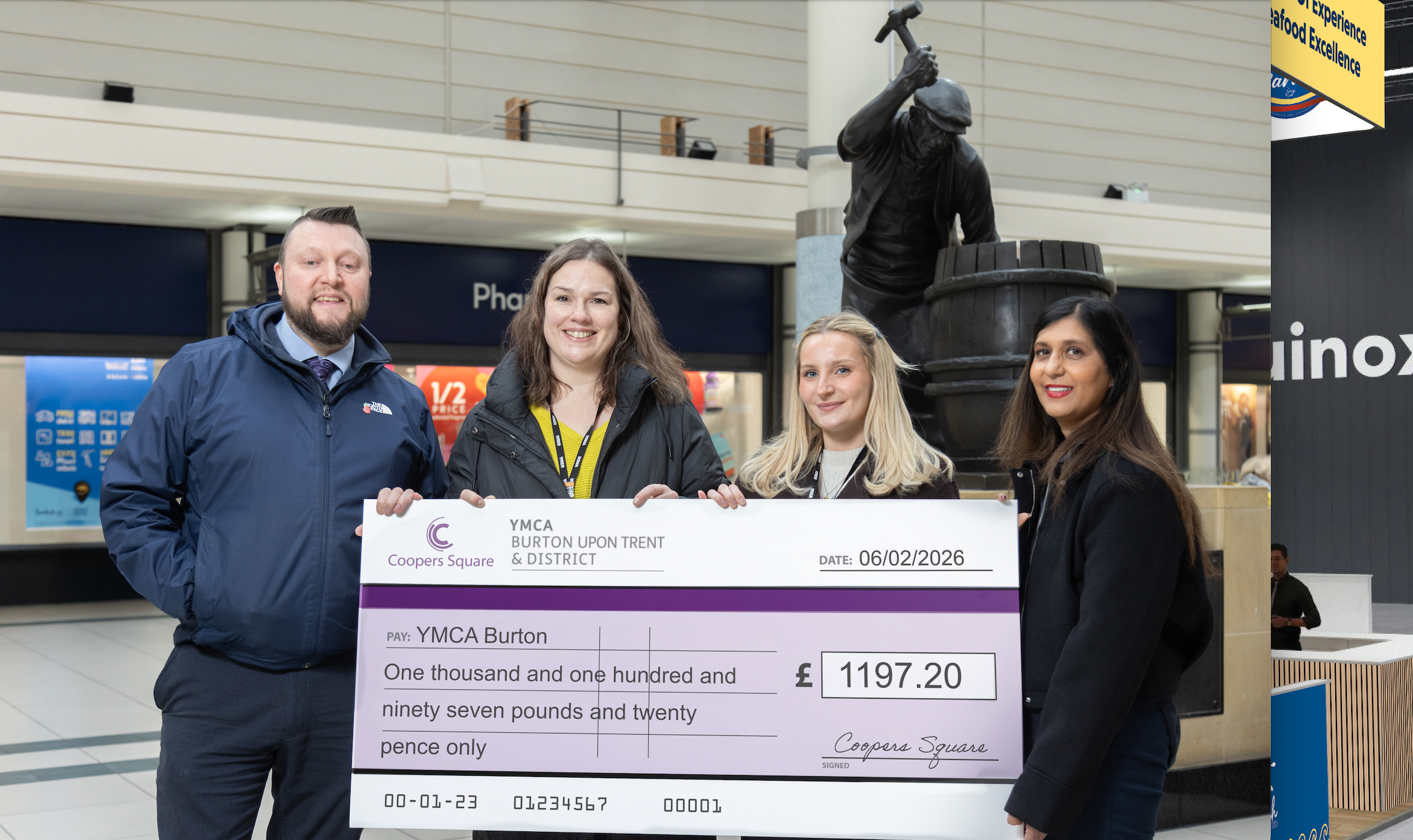 “We are incredibly proud of the generosity shown by our customers over the Christmas period. YMCA Burton carries out vital work in our community, supporting vulnerable people and providing safe spaces and opportunities for those who need it most. To be able to hand over £1,197.20 is a testament to the kindness of our shoppers and the strength of our community here at Coopers Square.”